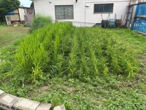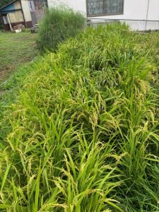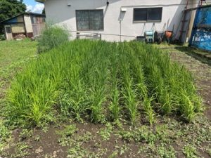 家族のおこわが食べたいという要望により畑の3分の2ほどにはもち米を、3分の1はななつぼしを作付けしましたが、暑くなってくるとぐんぐんと生育に差が出てきました。