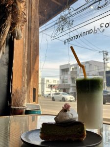 期間限定の『桑抹茶と桜餡のバスクチーズケーキ』は甘さ控えめで大人な味でした。